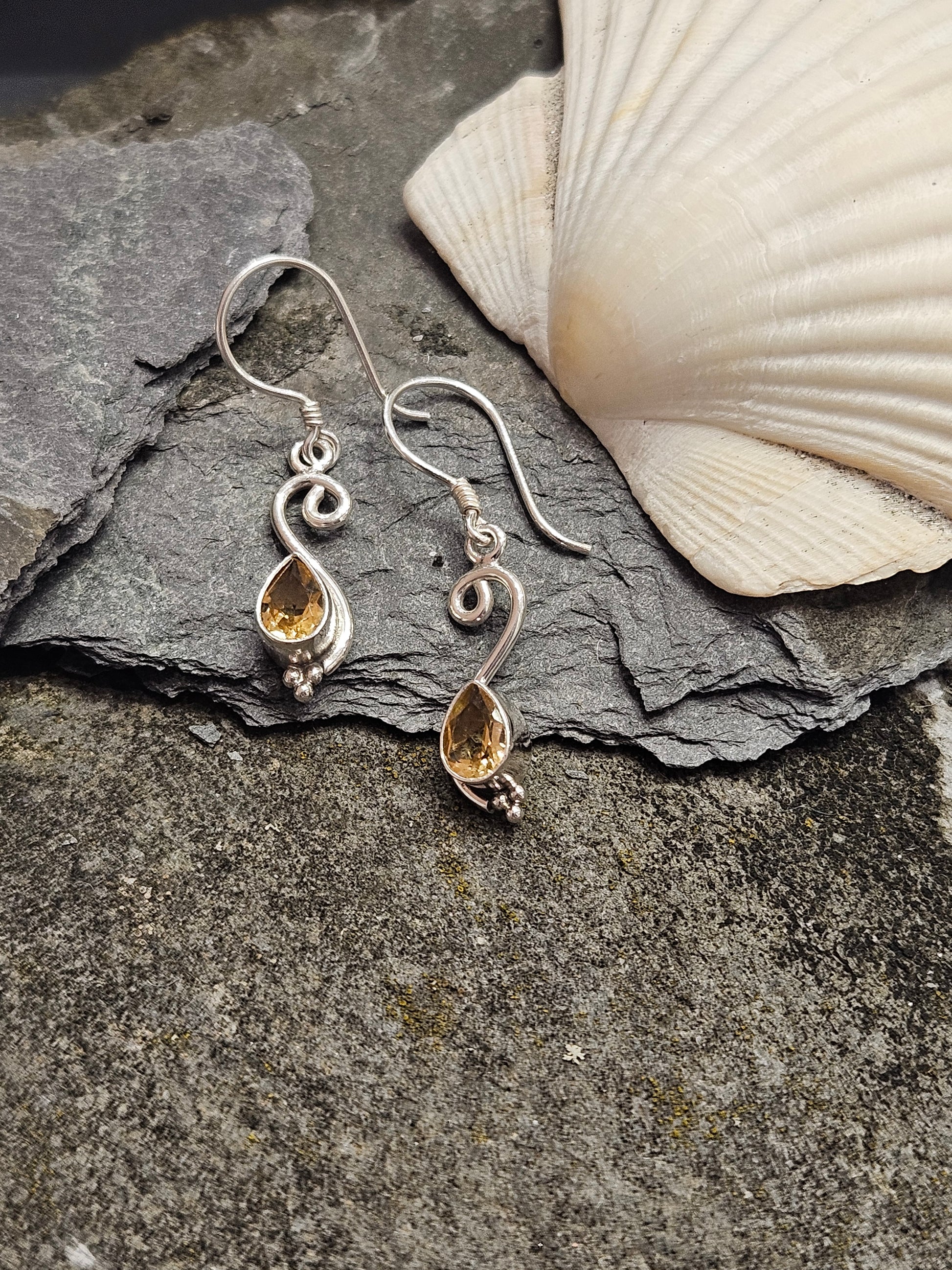 An interesting design which features a tear shaped stone of your choice and a silver swirl top. Ideal for everyday wear.