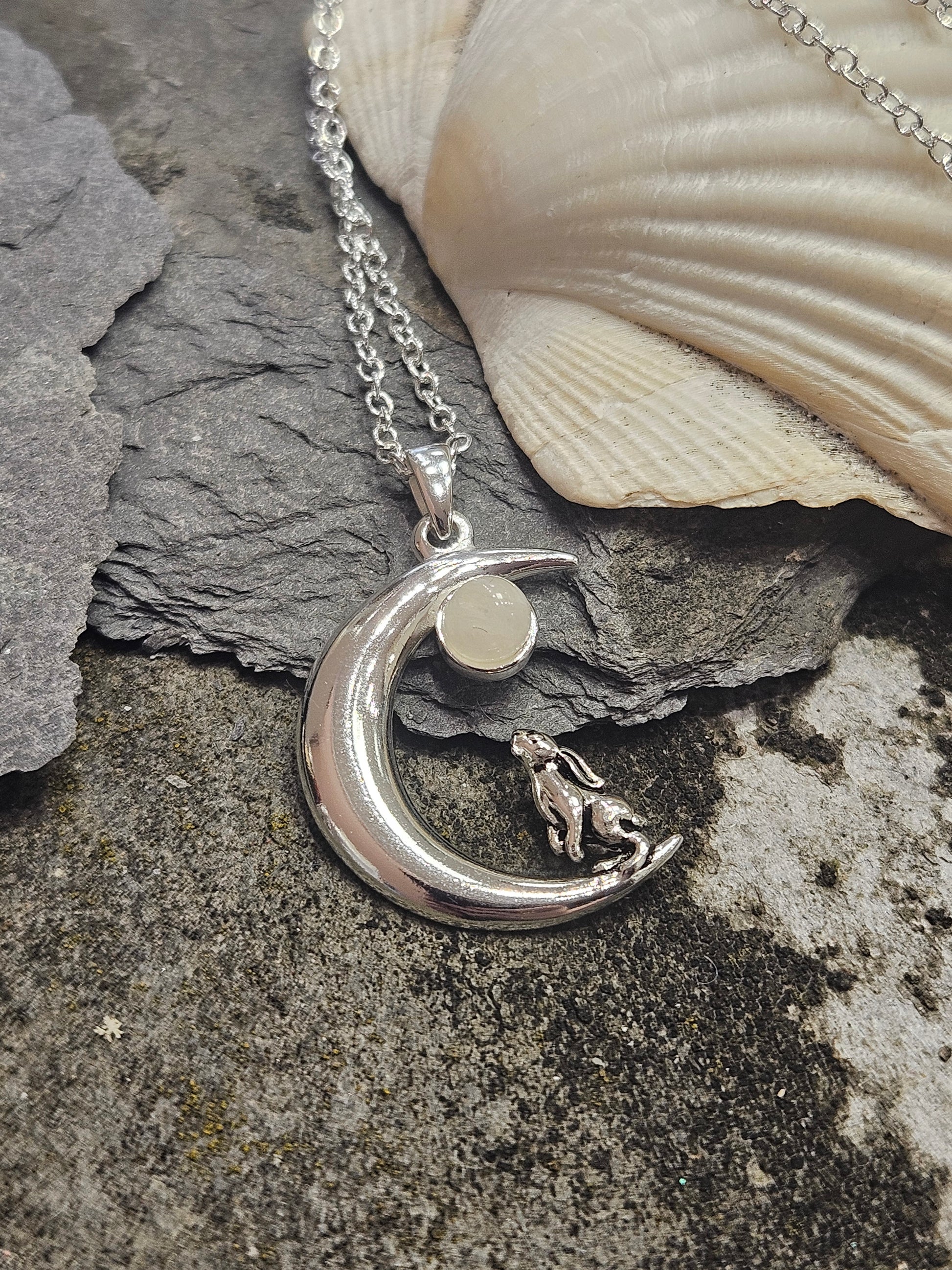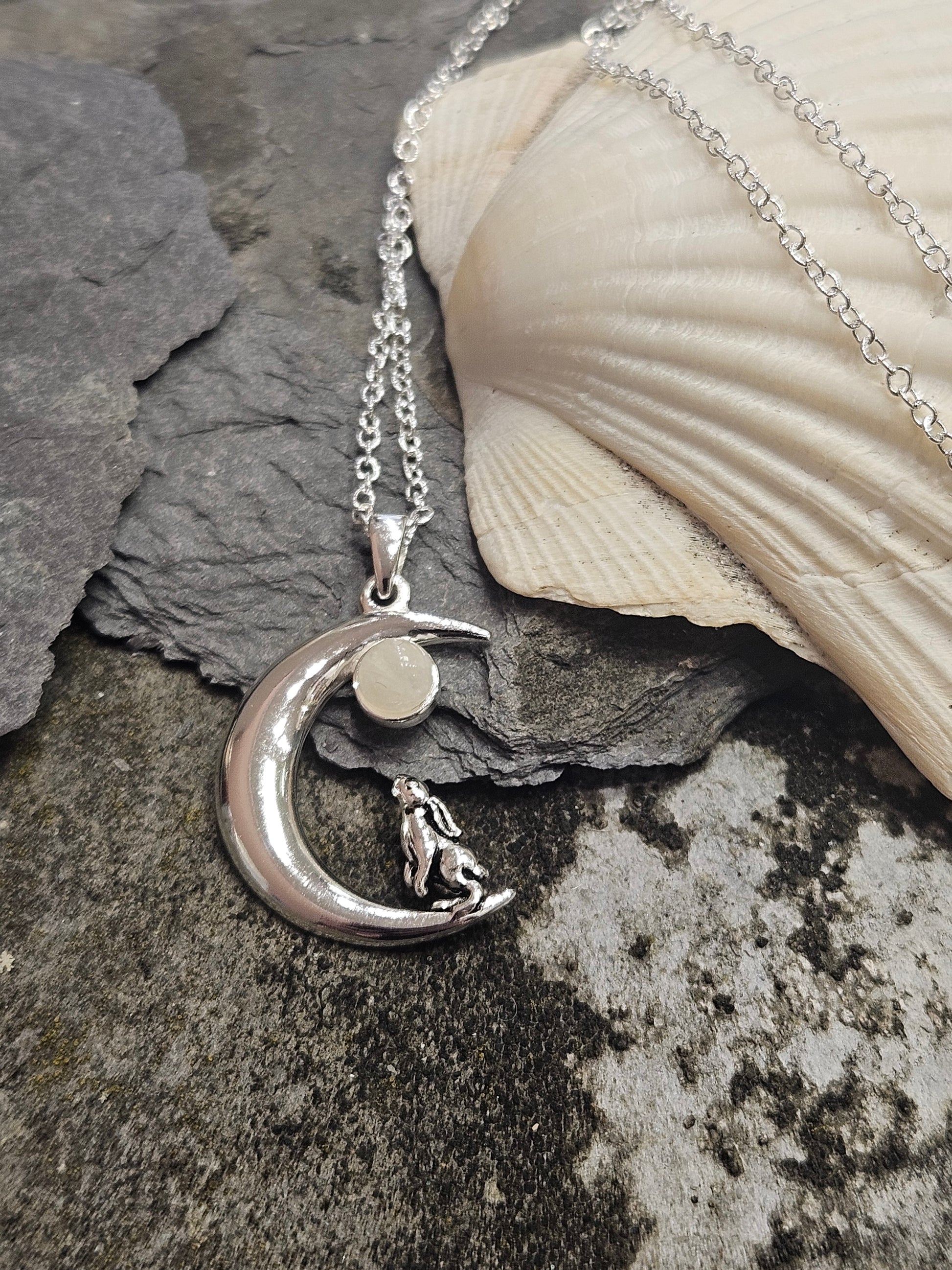 Moonstone Moon Gazing Hare Necklace